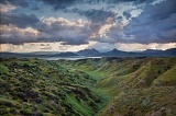 The last slivers of light fall an the Beaumont hills after a storm.